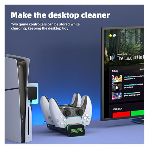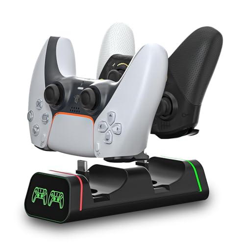 - Ampla compatibilidade: esta base de carregamento pode ser usada para controles ps5 dualsense, controle xbox series s/x, controle Nintendo Switch Pro, google controller, controle Xbox Elite 2. Use o adaptador de parede 5V 2A para carregá-lo e será mais rápido (o adaptador de parede não está incluído).