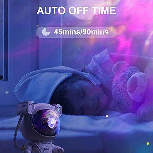 • Temporizador de desligamento automático: nosso projetor de estrelas tem 45 minutos/90 minutos de configuração de temporização, o quarto do projetor de luz de estrelas desligará automaticamente quando o tempo predefinido for atingido. Claro, você também pode cancelar o temporizador por controle remoto. Ajuda as crianças a adormecer facilmente, e dormir melhor para você também. E o temporizador pode ser cancelado para ficar ligado a noite toda.