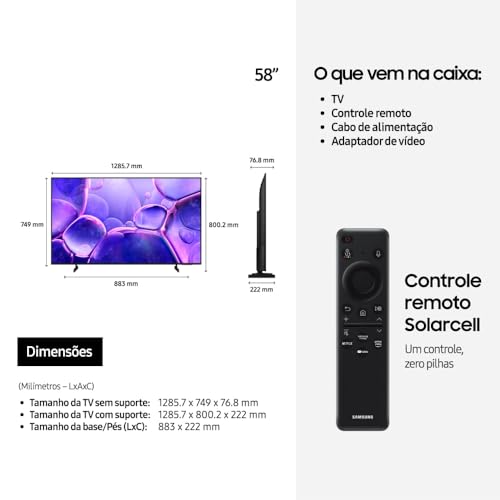 Início » Shop » Samsung Smart TV 58″ Crystal UHD 4K U8500F 2025, Xbox Cloud Gaming, Canais Gratuitos, 7 Anos de Atualização, AI Energy Mode, Alexa integrada