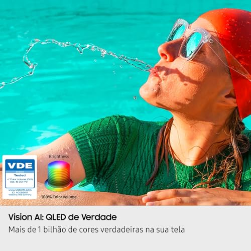 • Vision AI: QLED de Verdade: Mais de 1 bilhão de cores verdadeiras na sua tela. A Tecnologia de Pontos Quânticos garante que seus conteúdos tenham 100% do volume de cor, ressaltados com naturalidade através de uma camada de cristais associada ao Color Booster com AI. Tudo isso na primeira TV certificada pela PANTONE, referência mundial em especificação de cores. Além disso, é um produto sem cádmio em sua composição, um metal pesado danoso à saúde e ao meio ambiente.
