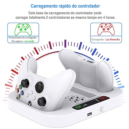 • 【CARREGADOR DE CONTROLE DUPLO RÁPIDO】O suporte vertical possui 2 slots para segurar os dois controladores quando o controlador para Xbox Series s não é usado ou não está carregando. Ele pode carregar 2 controladores simultaneamente em 4 horas. Possui 2 indicadores LED de carga mostrando o status da carga: Carregando, luz vermelha acesa; Totalmente carregada, luz verde acesa. Inclui 2 portas USB para todos os seus acessórios externos.