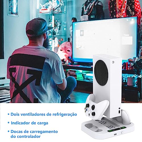 Suporte de carregamento com ventilador de resfriamento para Xbox Series S, acessórios Estação de carregamento para Xbox Series S com 2 baterias recarregáveis de 1400 mAh, velocidade dos ventiladores de 3 níveis