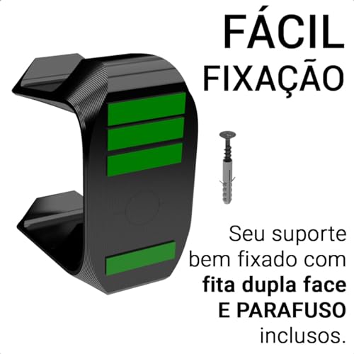 - Fácil Instalação com Fita Dupla Face e Parafuso (Inclusos) devem ser utilizados em conjunto. Instruções: Limpar a área de fixação com pano levemente úmido, retirar a película protetora da fita dupla face e fixar o produto no local desejado, fazendo uma leve pressão para melhor aderência. Com o suporte já posicionado e fixado na posição escolhida, proceda com a furação no local previsto (meio da peça) e parafuse. Pronto! Seus controles estão dispostos de forma elegante e decorativa.