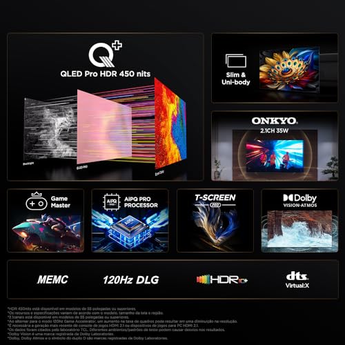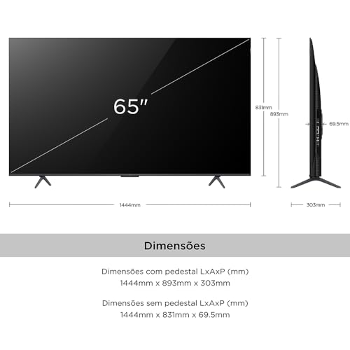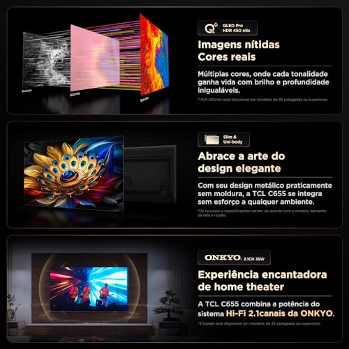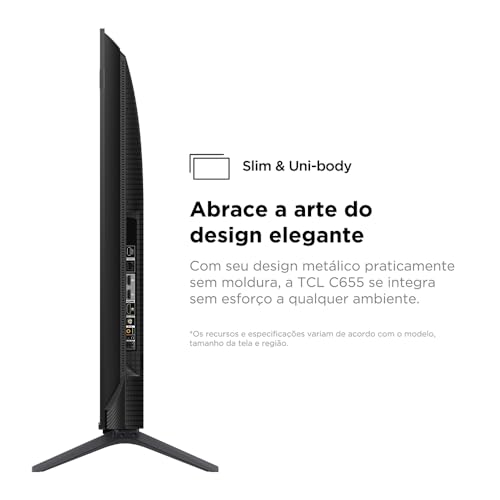 TCL QLED SMART TV 65” C655 4K UHD GOOGLE TV, Dolby Vision Atmos, DTS, HDR10+, Subwoofer, Wi-Fi dual band e Bluetooth, 3 HDMI, HDMI 2.1 Comando de voz à distância, Google Assistente, ALLM, VRR e design sem bordas