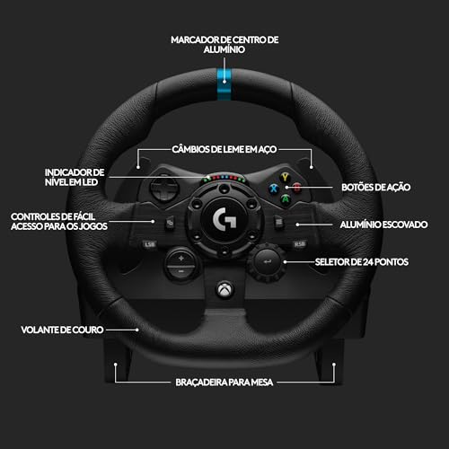 - MATERIAIS PREMIUM – Design Logitech G atualizado com volante de metal, couro costurada à mão e pedais de metal polido.